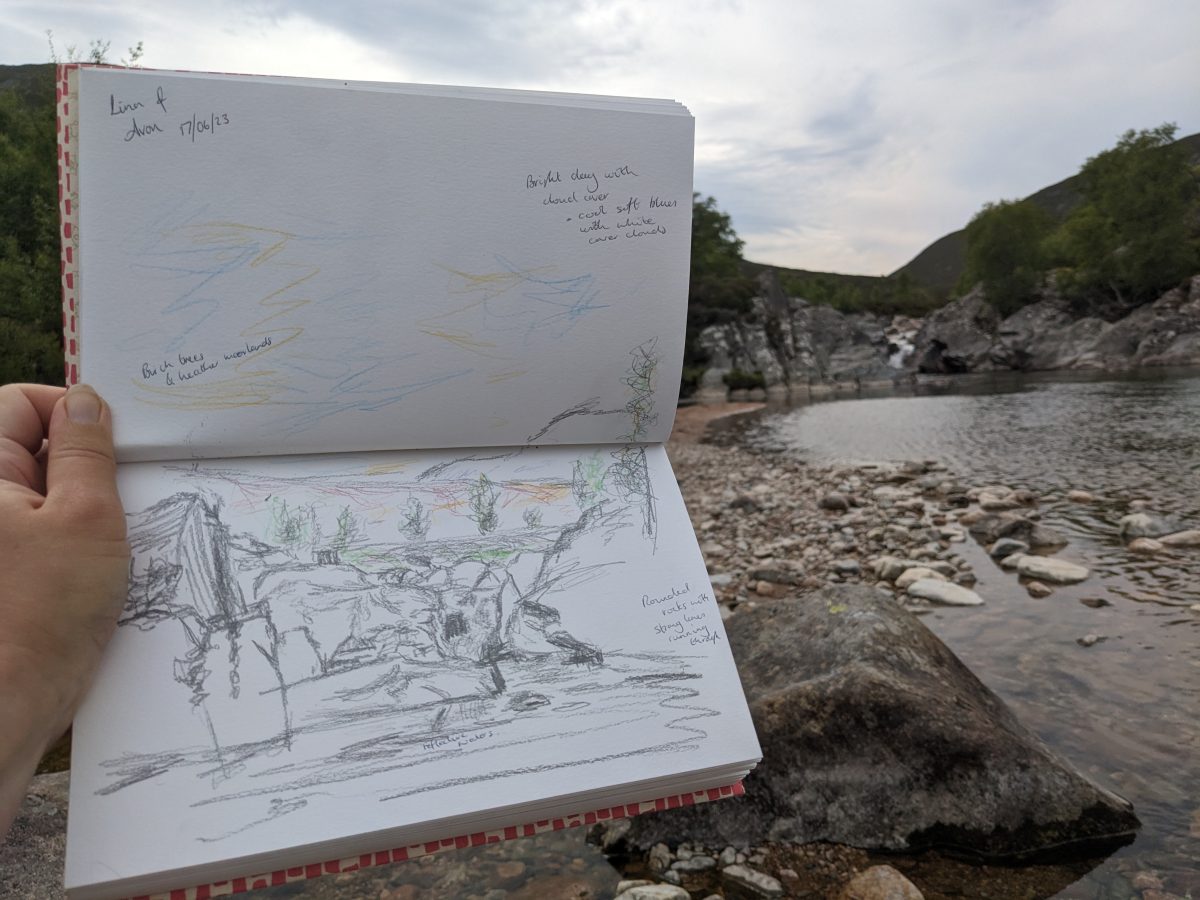 Landscape researcher, community heritage officer, and most recently artist, the connections between people and landscape have been a constant throughout my life. Since 2021, Adventures with Landscape has allowed me to pursue my dream of exploring this through creative practice from our home in Tomintoul, within the Cairngorms National Park.