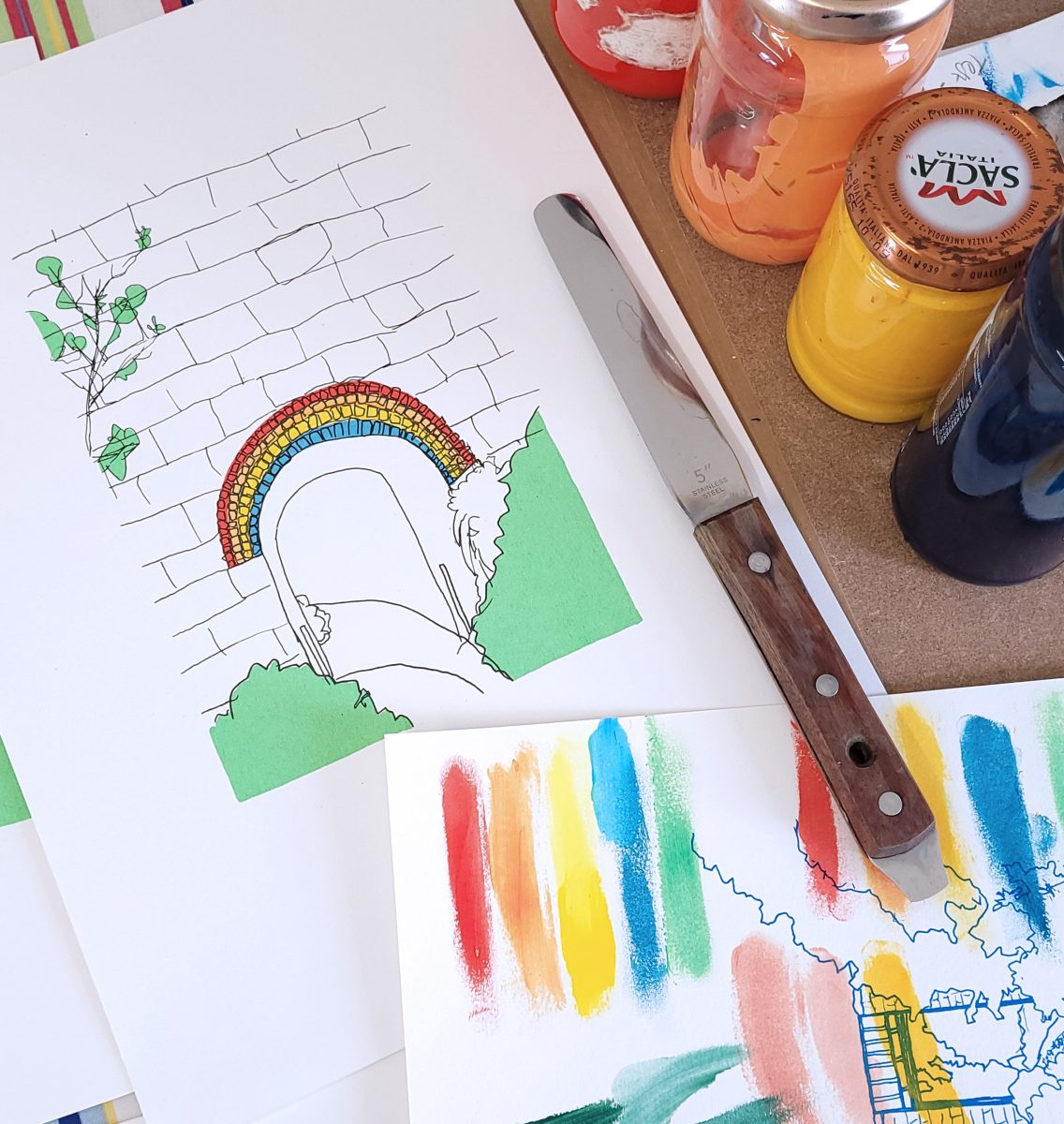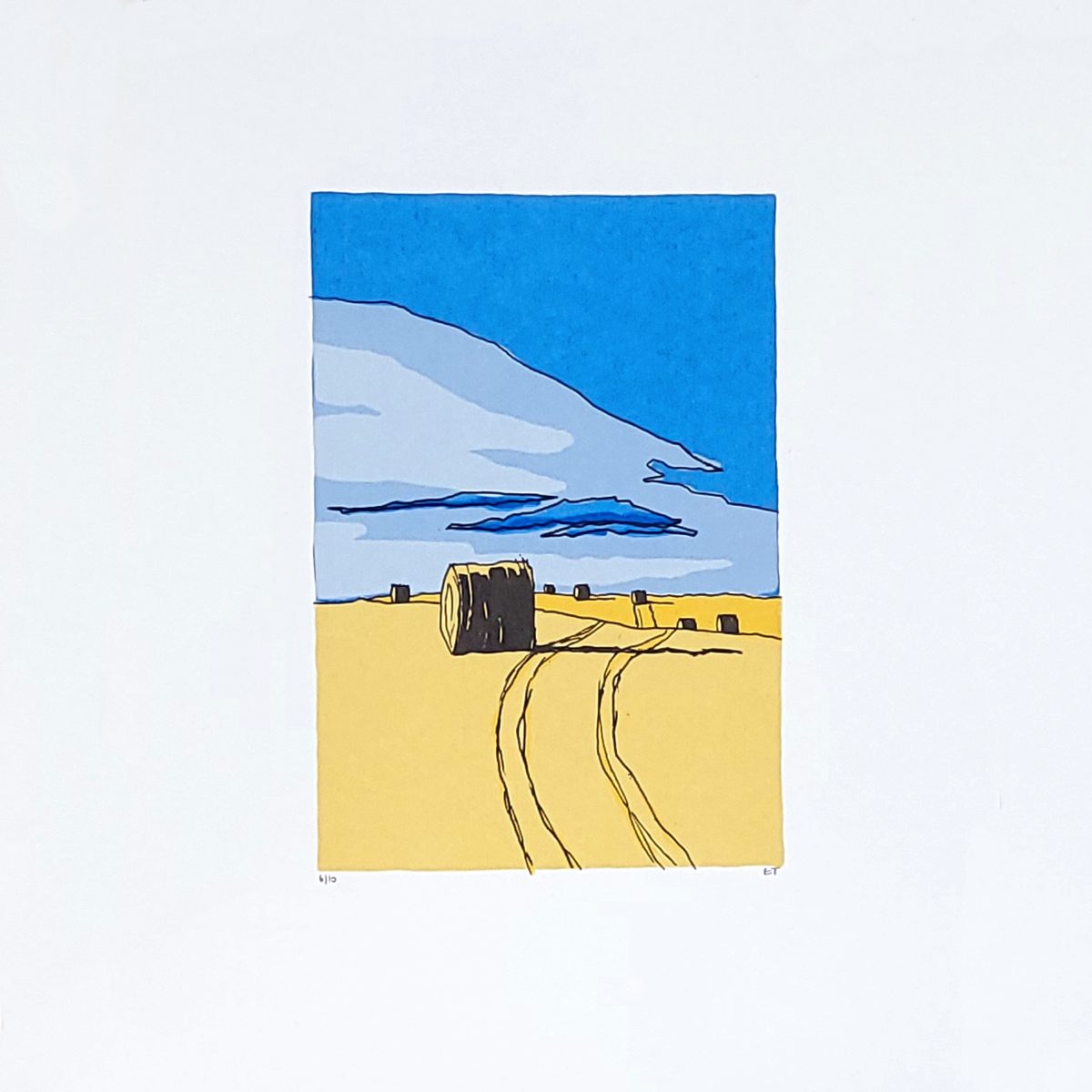 Now working from her home studio in northeast Scotland, Elaine is passionate about creating art that evokes emotion, nostalgia, and joy. Her work is characterized by bold, vibrant colours that bring her line drawings and photographic compositions to life. Inspired by the coastal and rural landscapes of the region, she primarily works with silkscreen and risograph printing techniques—both of which complement her distinctive illustrative style.