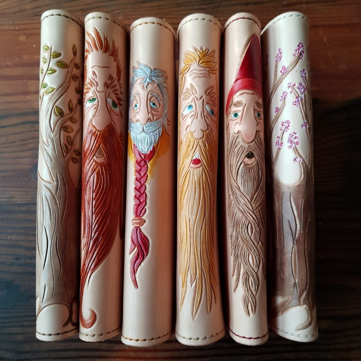 I have been a leathersmith for over twenty years, learning my craft from a master saddler in Alberta, Canada. In the early days I concentrated on journals, kilt belts and patches for bikers. But since then, my skills have increased and I now produce a wide range of items from books to bowls; buttons to director's chairs; kilt belts to key fobs. Leather is very versatile and, with a deep respect for leather as my principal material and a firm belief in the 'nose to tail' principle, it is a pleasure to work with. Starting with the initial drawings, on through carving, adding colour and finally stitching and polishing, every intricate step in the process is my favourite.