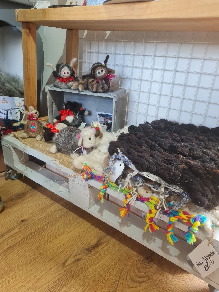 We now have a pedigree and fibre flock of 120 +consisting of 8 different breeds. They’re amazing fleeces inspired me to get creative so I make felted and peg loomed rugs and cute felted animals.